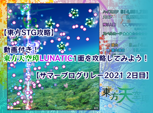 【東方STG攻略】動画付き!東方天空璋LUNATIC1面を攻略してみよう!【サマーブログリレー2021 2日目】
