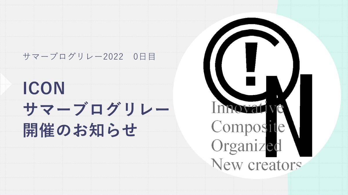 2022-08-27 サマーブログリレー開催のお知らせ【サマーブログリレー2022 0日目】 サマーブログリレー2022 この記事は ICON サマーブログリレー2022 0日目の記事です。 明日から【サマーブログリレー2022】が始まります! ICONのメンバーが様々な記事をリレー形式で投稿していきます。 お楽しみに!!